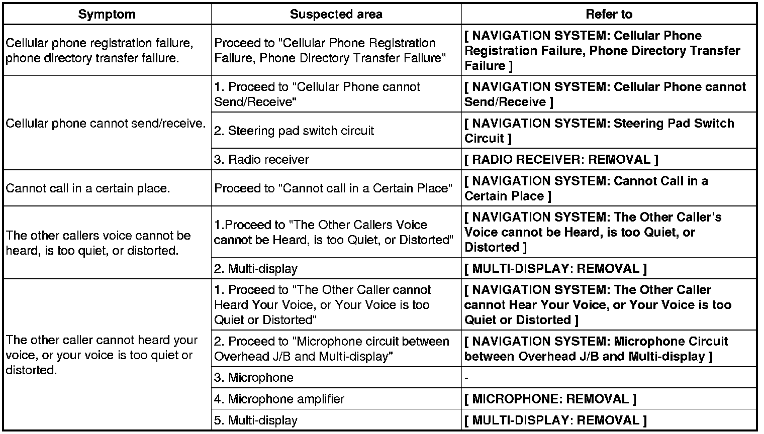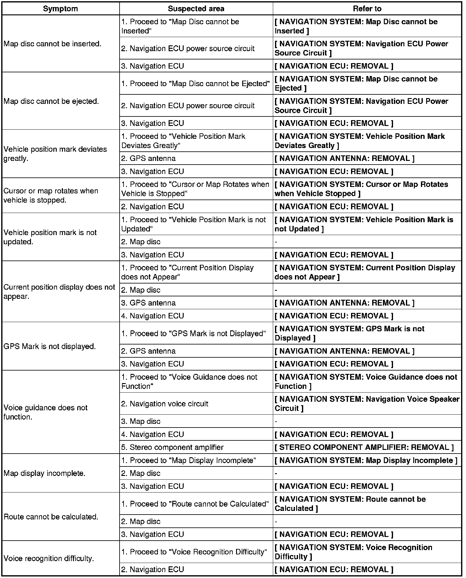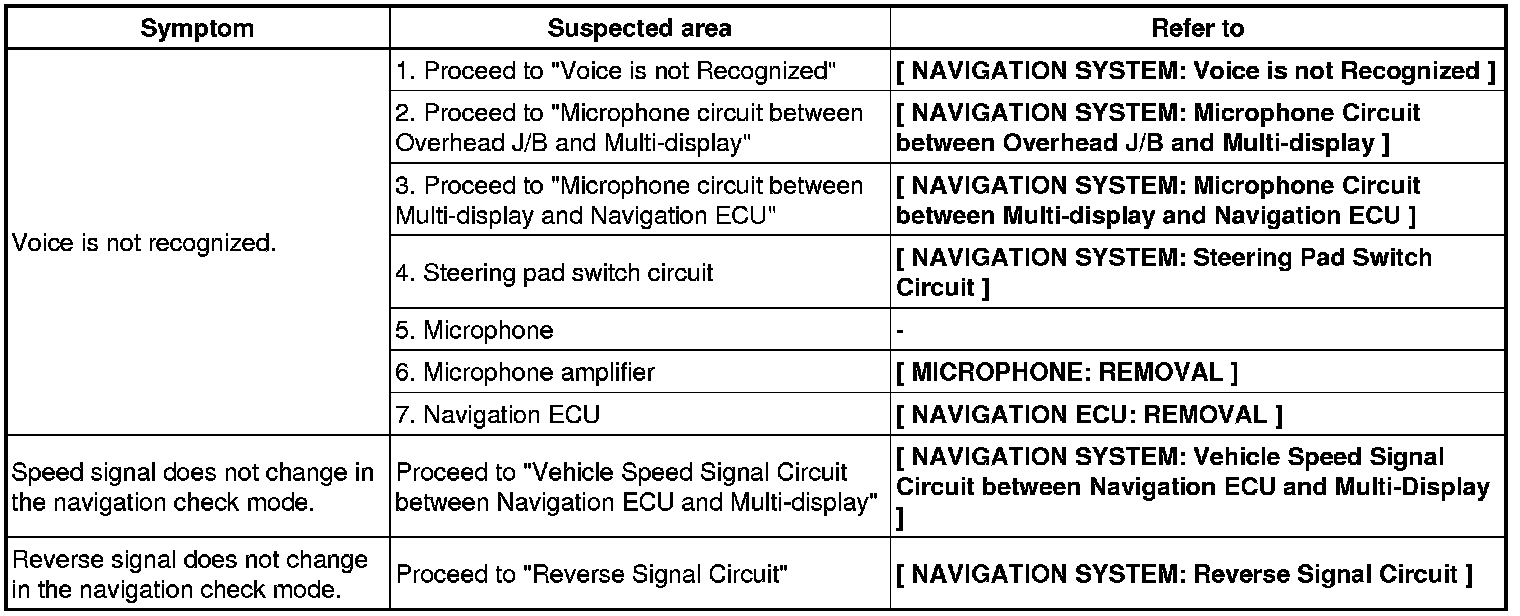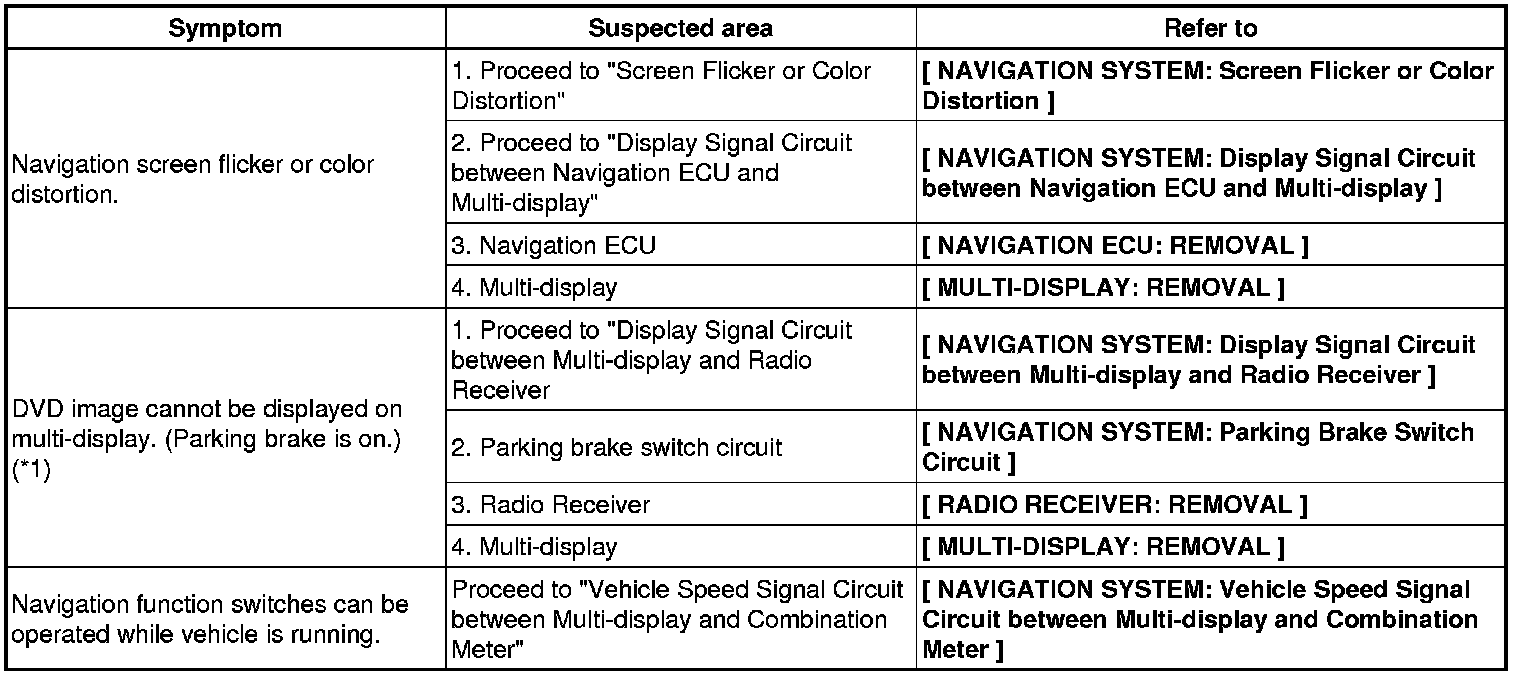 NAVIGATION: NAVIGATION SYSTEM: PROBLEM SYMPTOMS TABLE