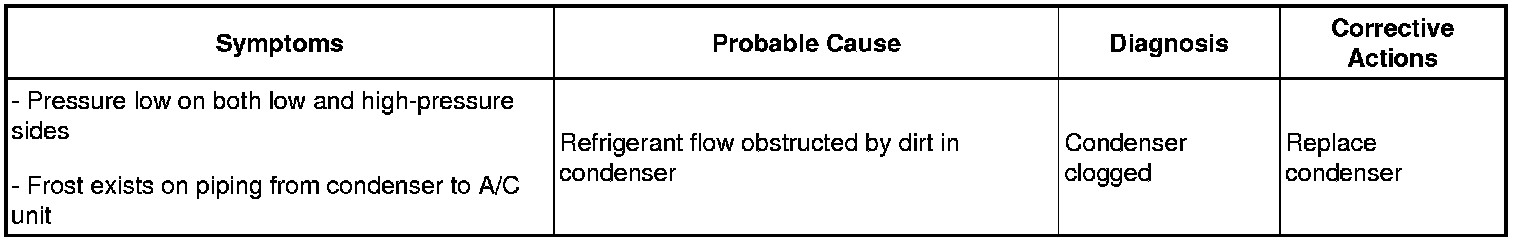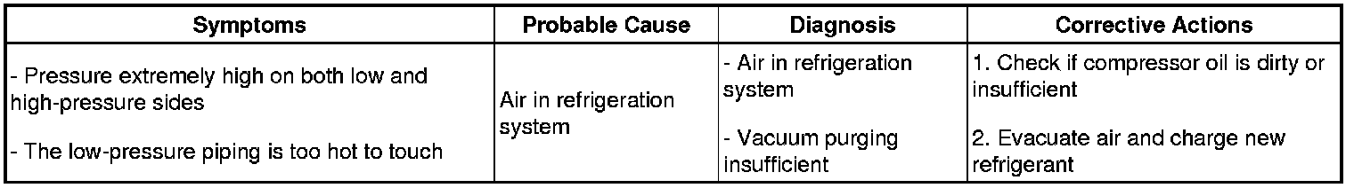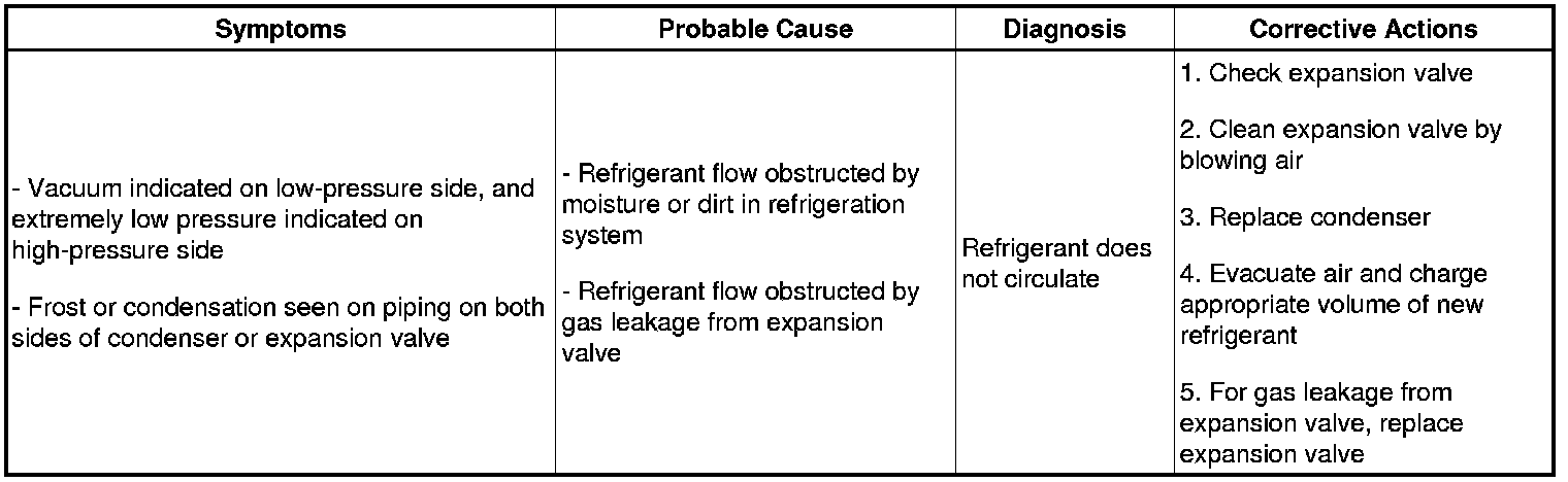 (7) The A/C system does not function due to air in the refrigeration system.