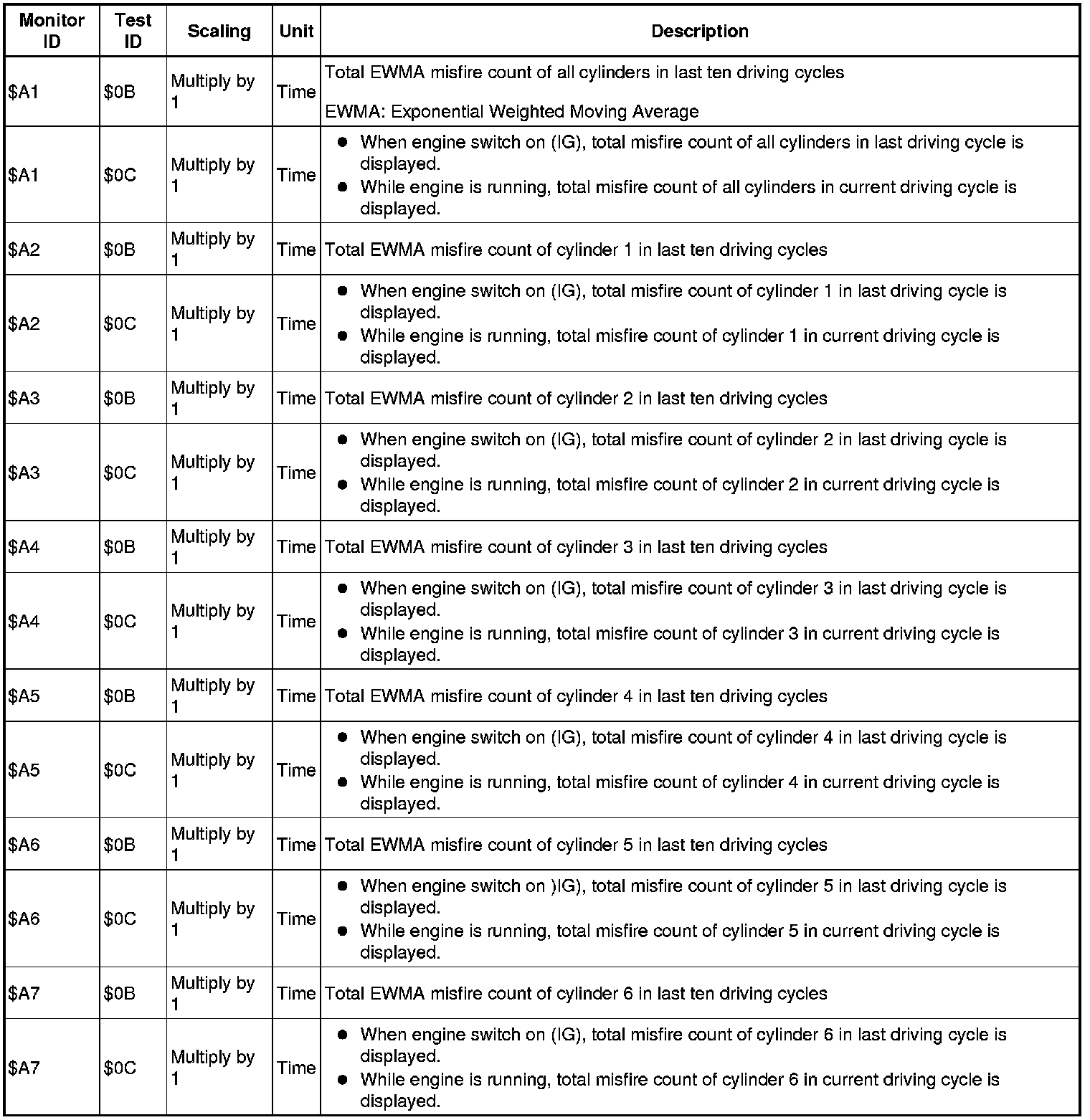 If you use a generic scan tool, multiply the value by the scaling value listed below.