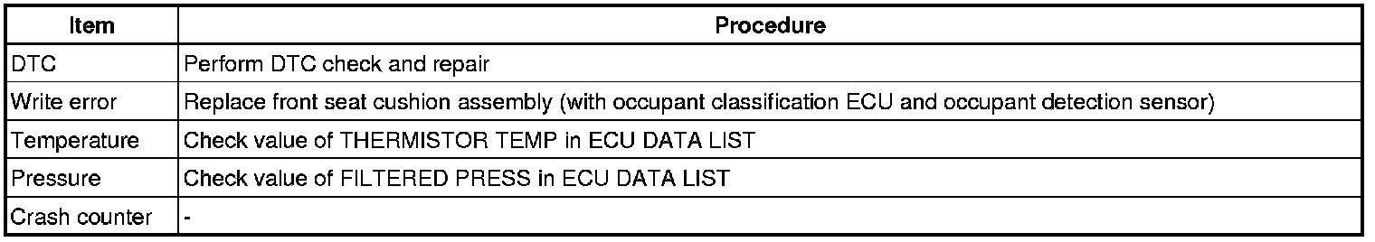 - If After Exchange is selected before the previous ECU data are stored in the Techstream, the display screen returns to CONDITION SELECT ECU: Occupant Detect.