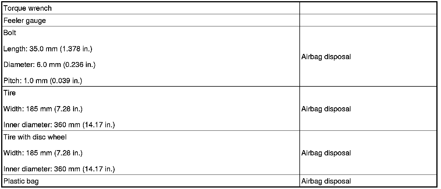 PREPARATION: SUPPLEMENTAL RESTRAINT SYSTEM: EQUIPMENT