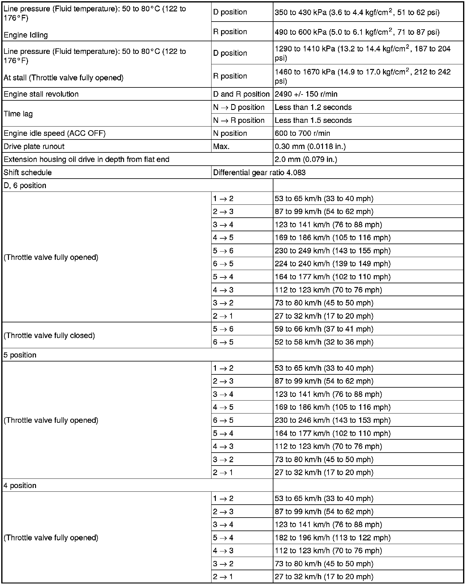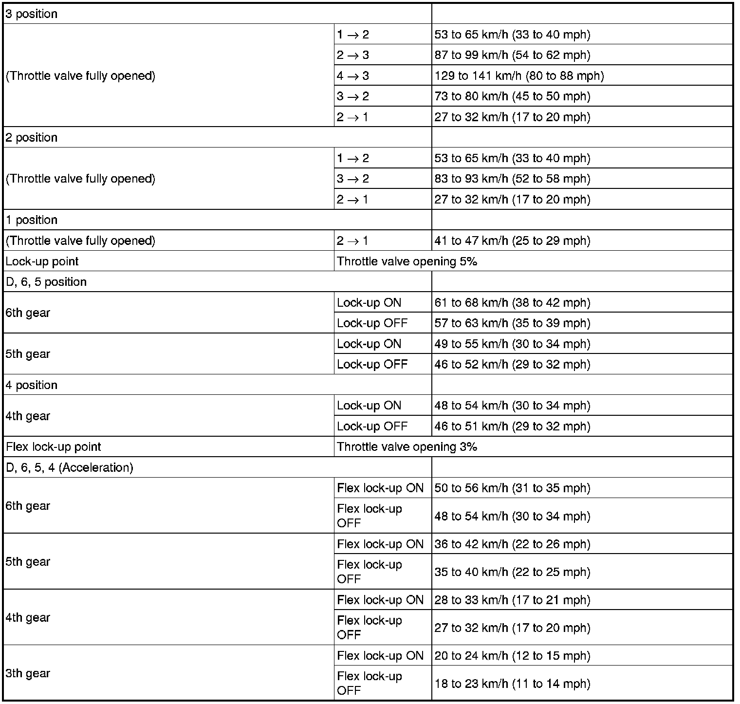 - All shift point values indicated in the above tables are actual values. Therefore, if checking a shift point with a chassis dynamometer, keep in mind that there is a range of error in the chassis dynamometer indication.