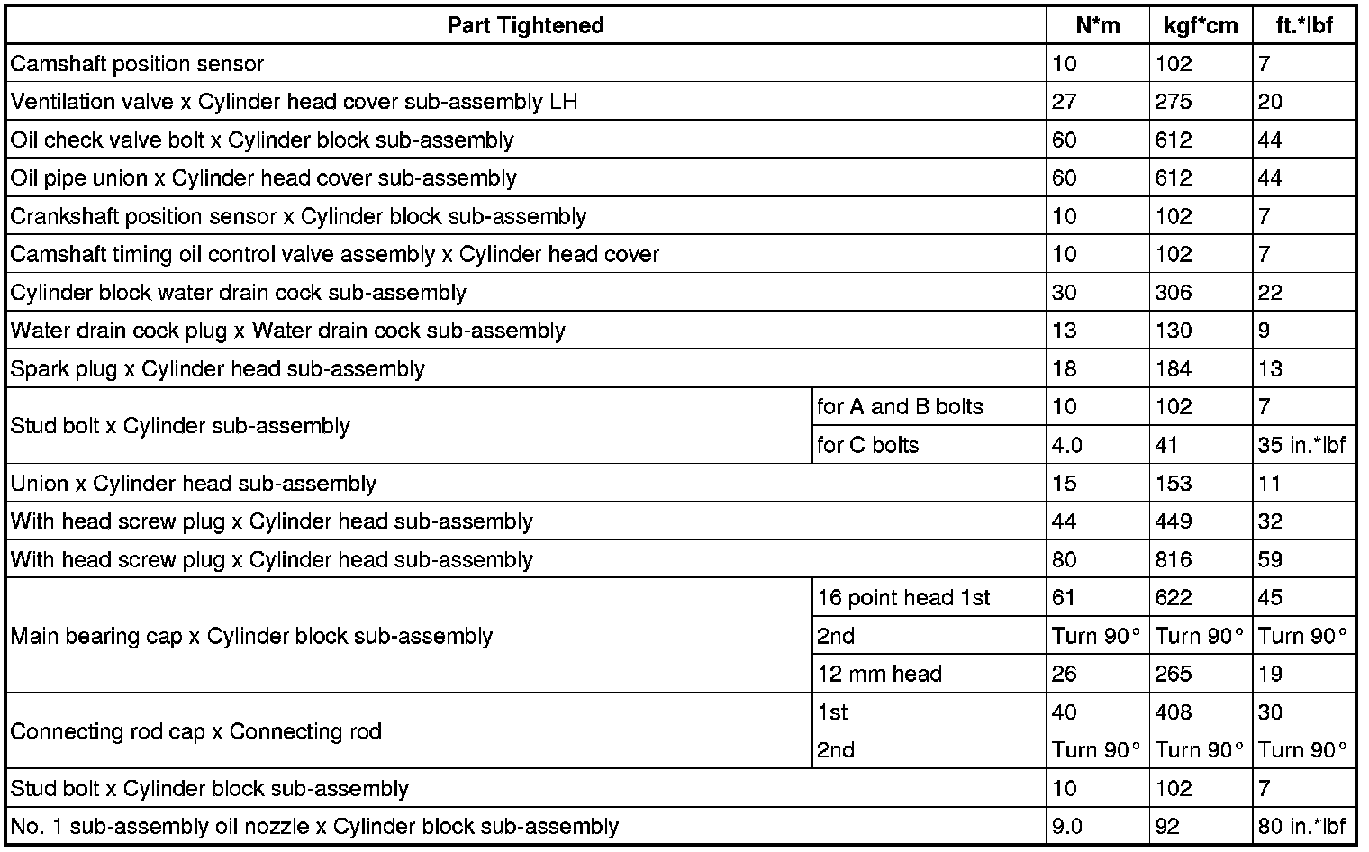 SERVICE SPECIFICATIONS: 2GR-FSE ENGINE MECHANICAL: TORQUE SPECIFICATIONS