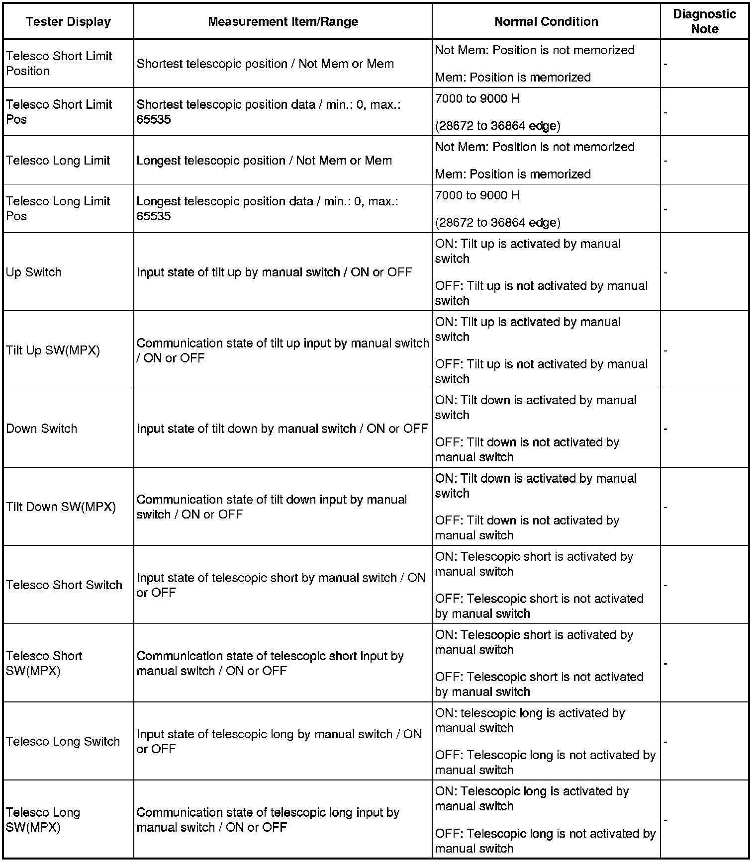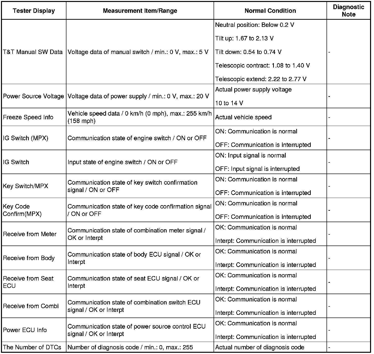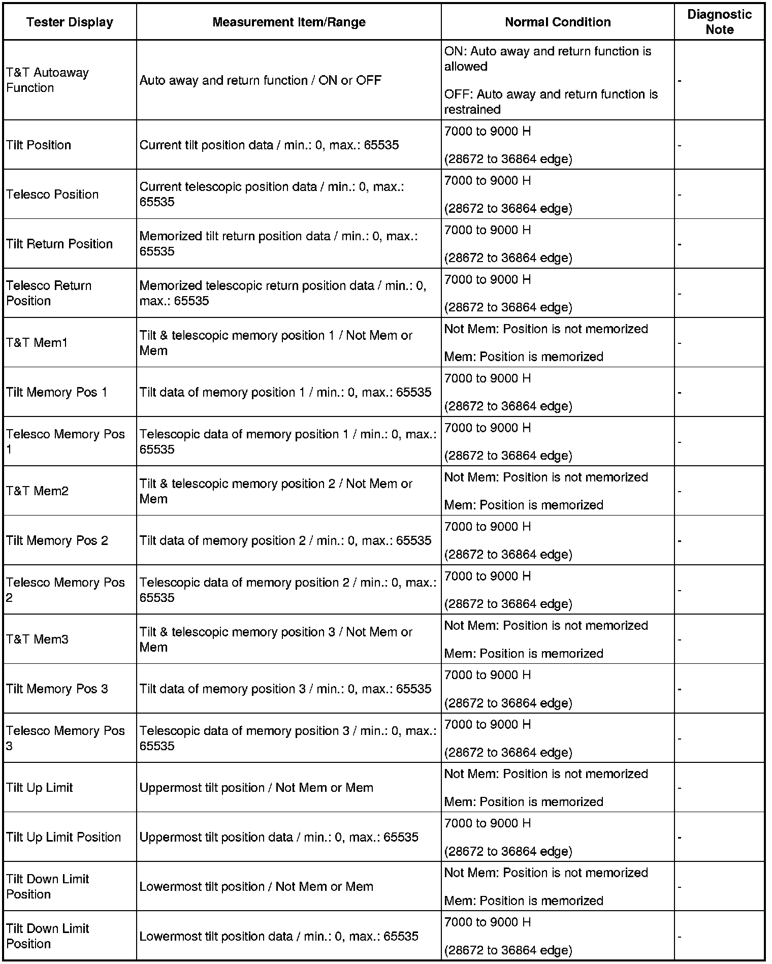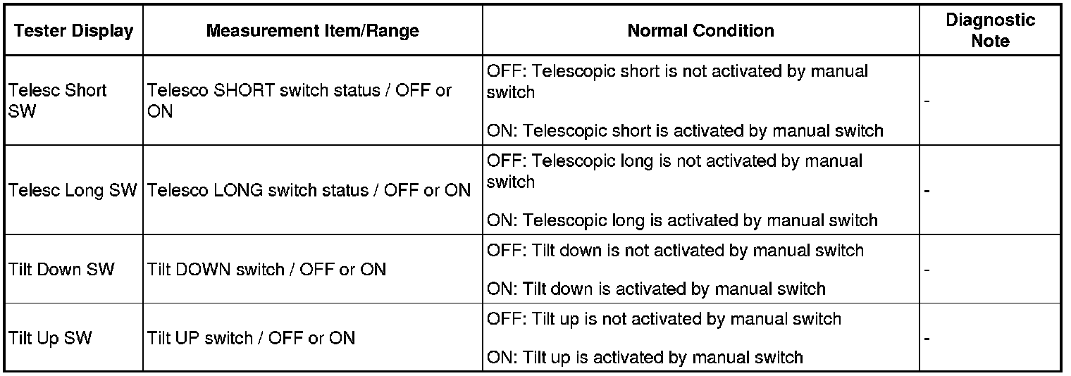 STEERING COLUMN: POWER TILT AND POWER TELESCOPIC STEERING COLUMN SYSTEM: DATA LIST / ACTIVE TEST