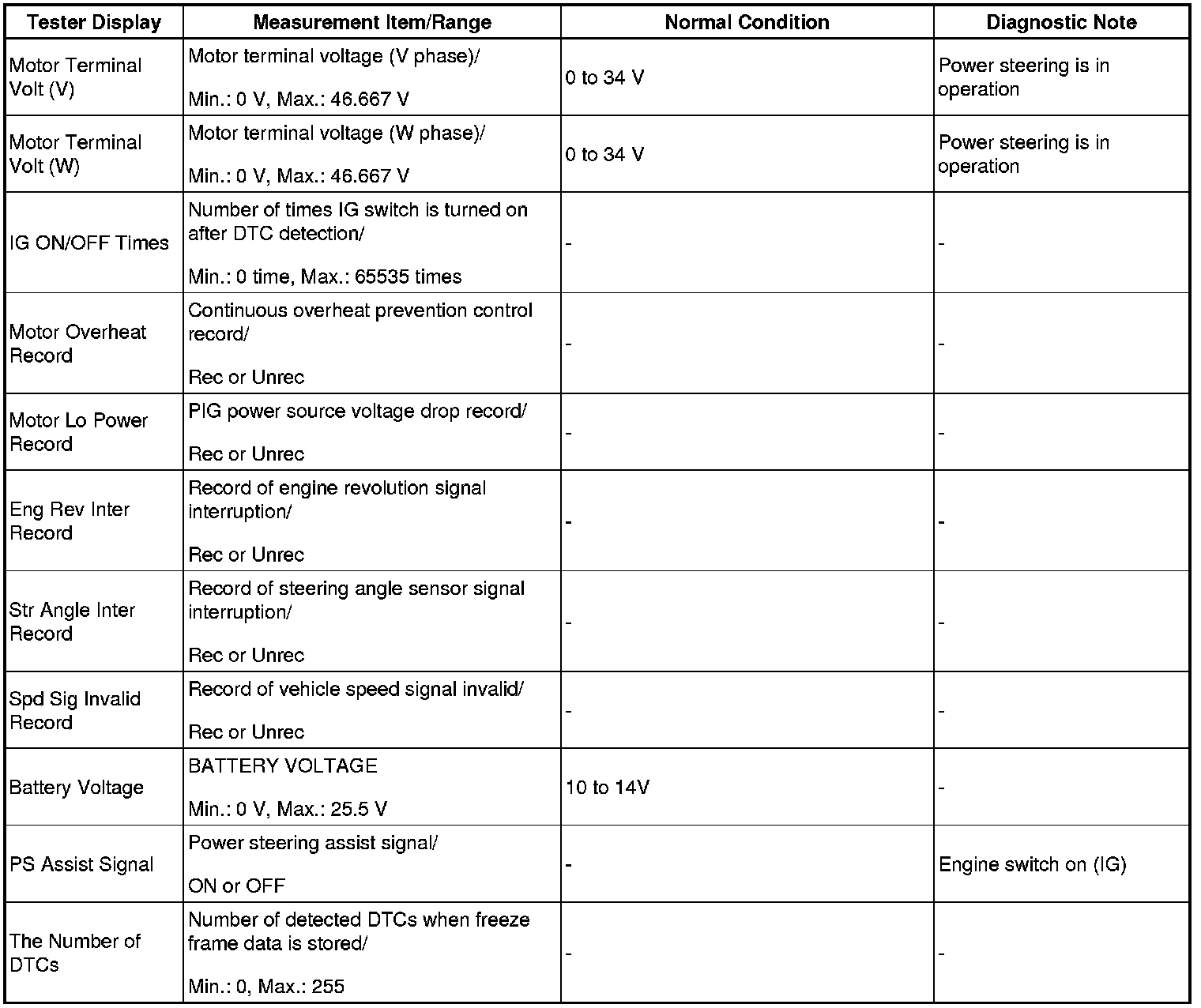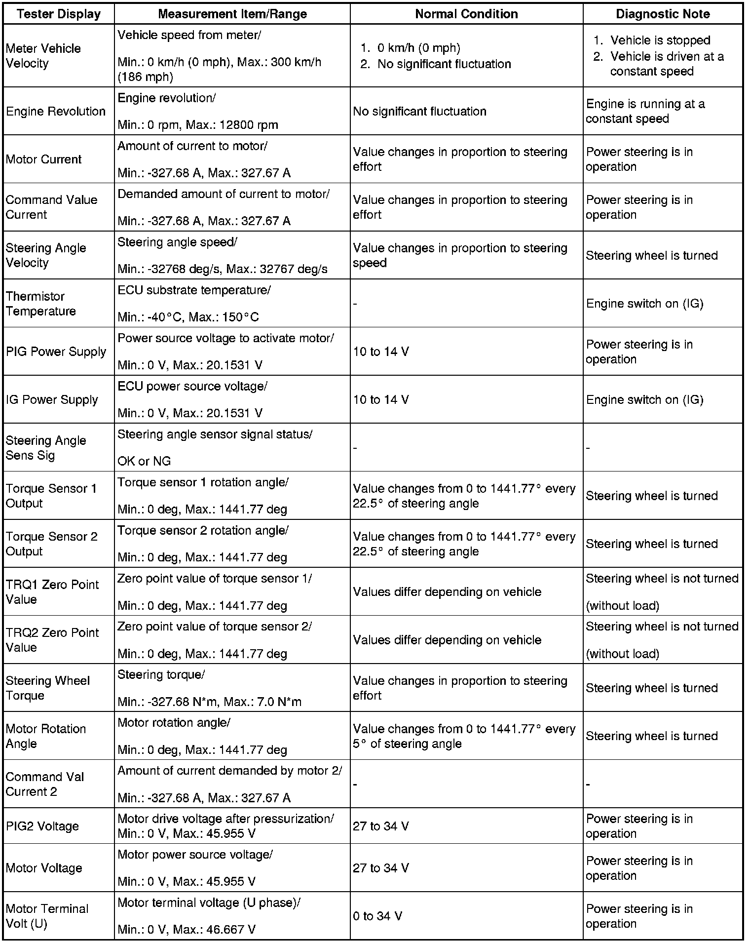 POWER STEERING: ELECTRONIC POWER STEERING SYSTEM: DATA LIST / ACTIVE TEST