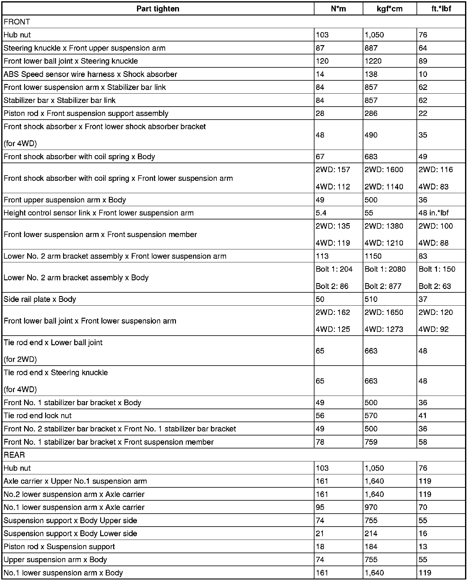 TORQUE SPECIFICATIONS
