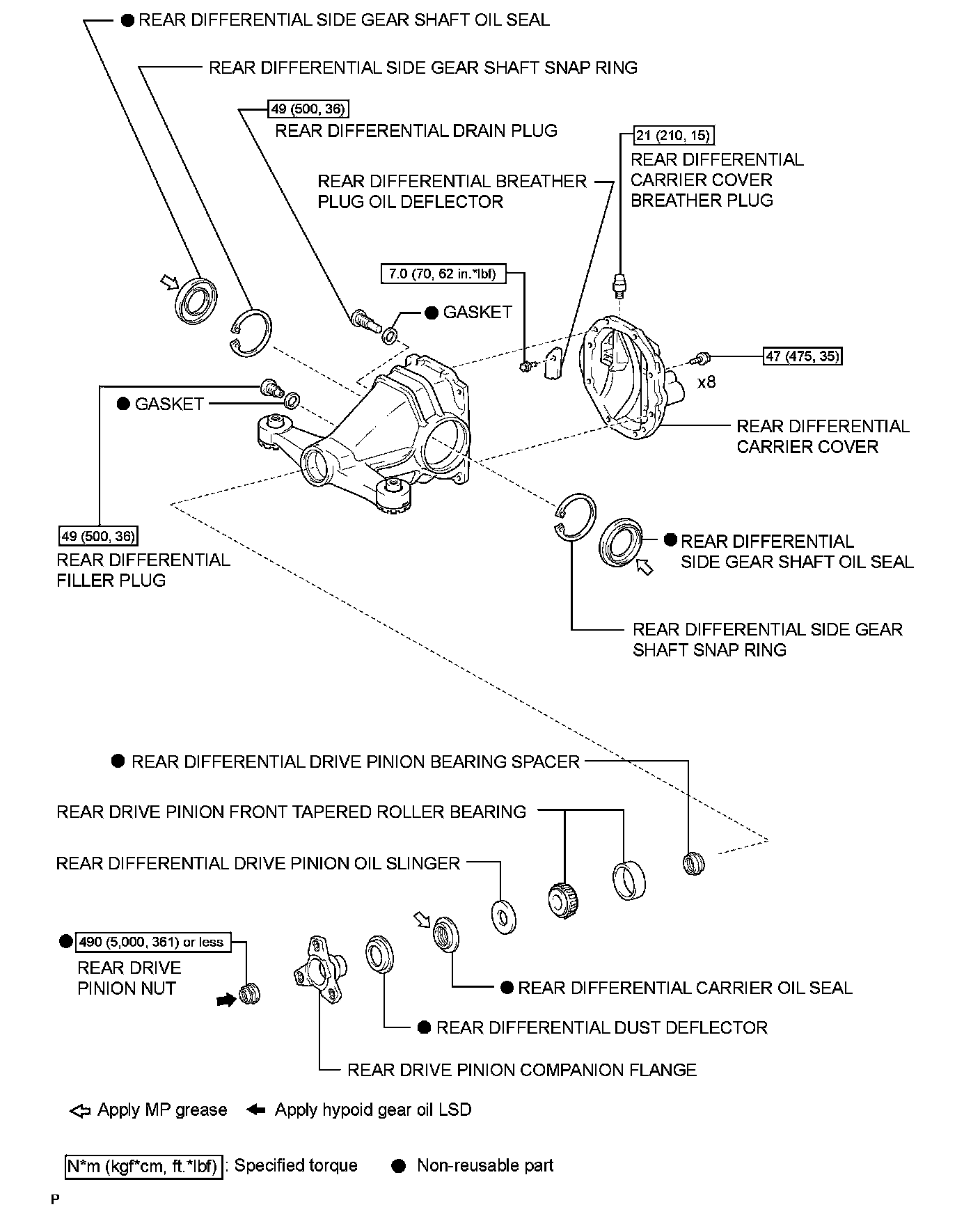 DIFFERENTIAL: REAR DIFFERENTIAL CARRIER ASSEMBLY (for 2GR-FSE): COMPONENTS