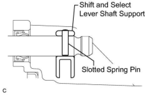 (a) Using a pin punch (dia5 mm) and a hammer, remove the slotted spring pin and shift and select lever shaft support from the shift and select lever shaft.