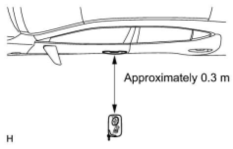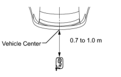 (2) Step 2: Check that when the key is brought within 0.7 to 1.0 m (2.30 to 3.28 ft.) of the vehicle, the system enters unlock standby mode.