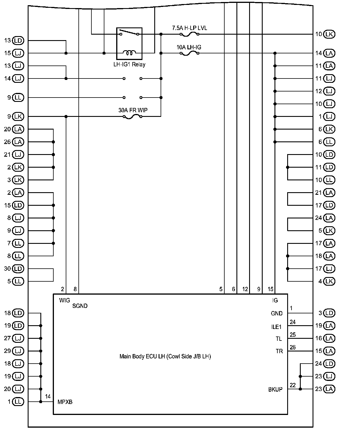 Cowl Side J/B LH Inner Circuit: