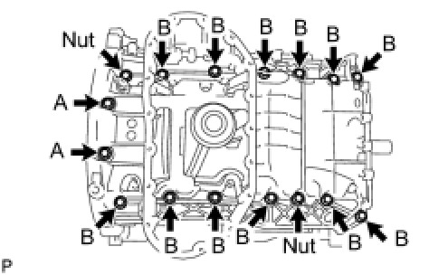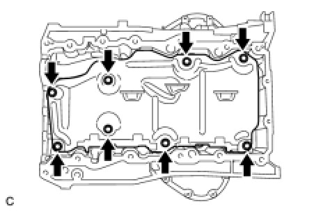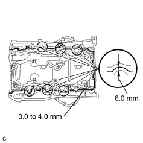 - Install the oil pan sub-assembly within 3 minutes and tighten the bolts and nuts within 15 minutes after applying seal packing.