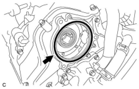 - Do not allow foreign matter to contact the oil seal face of the camshaft timing control motor assembly LH (the surface that contacts the timing chain cover sub-assembly).