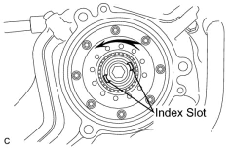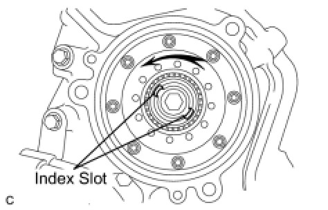 (a) Turn the camshaft timing gear assembly intermediate shaft index slot in the counterclockwise direction by hand, to set it to the maximum retard angle position.
