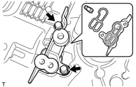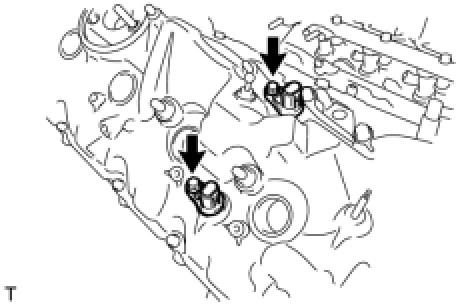 - Align the timing chain cover sub-assembly knock pin with the camshaft timing control motor pin hole to install the camshaft timing control motor assembly RH.