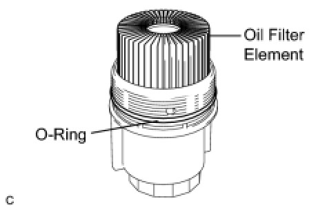 (b) Apply a light coat of engine oil to a new O-ring and install it to the oil filter cap.