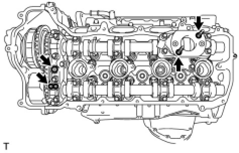 - Install the camshaft timing control motor assembly LH with the arrow facing upward, as shown in the illustration.