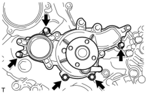 (a) Install the water pump assembly and new water pump gasket with the 5 bolts.