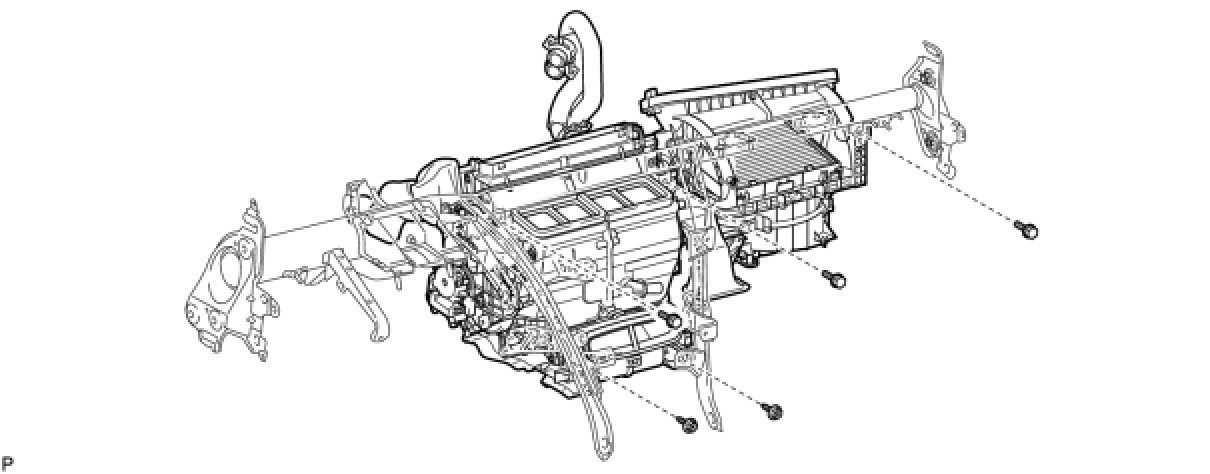 (a) Remove the 2 screws, 3 bolts, and air conditioner unit assembly.