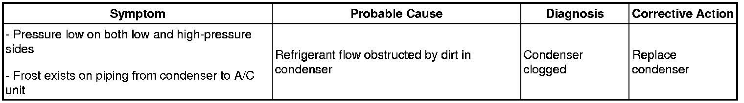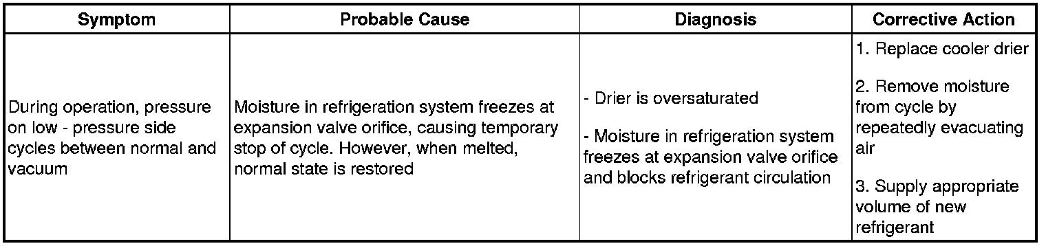 (2) The A/C system periodically changes between normal and improper function due to moisture in the refrigeration system.