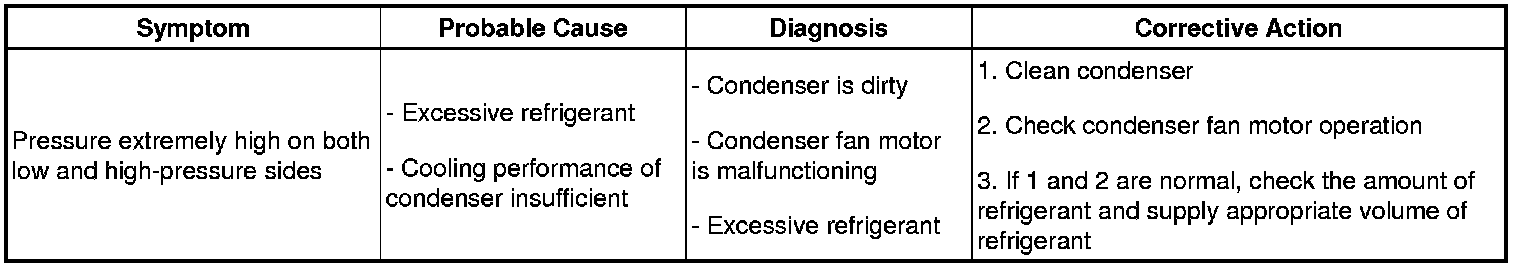 (a) This method uses a manifold gauge set to locate problem areas. Read the manifold gauge pressure when the following conditions are established. Test conditions: