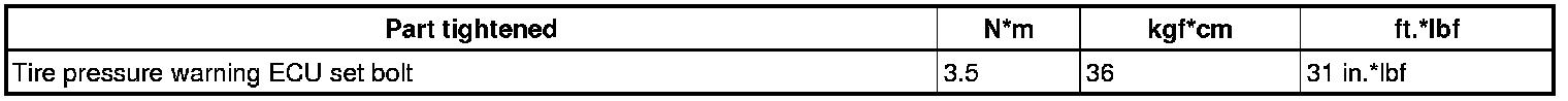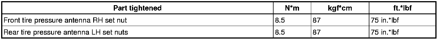 SPECIFICATIONS: TIRE PRESSURE MONITORING: TORQUE SPECIFICATIONS