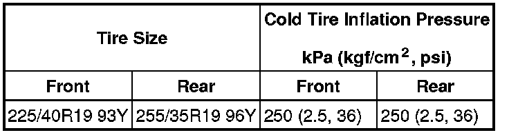 If the vehicle is to be driven at sustained high speeds of above 160 km/h (100 mph), in countries where such speeds are permitted by law, inflate the front and rear tires to 310 kPa (3.1 kgf/cm2, 45 psi) provided that it does not exceed the maximum cold tire inflation pressure molded on the tire sidewall.