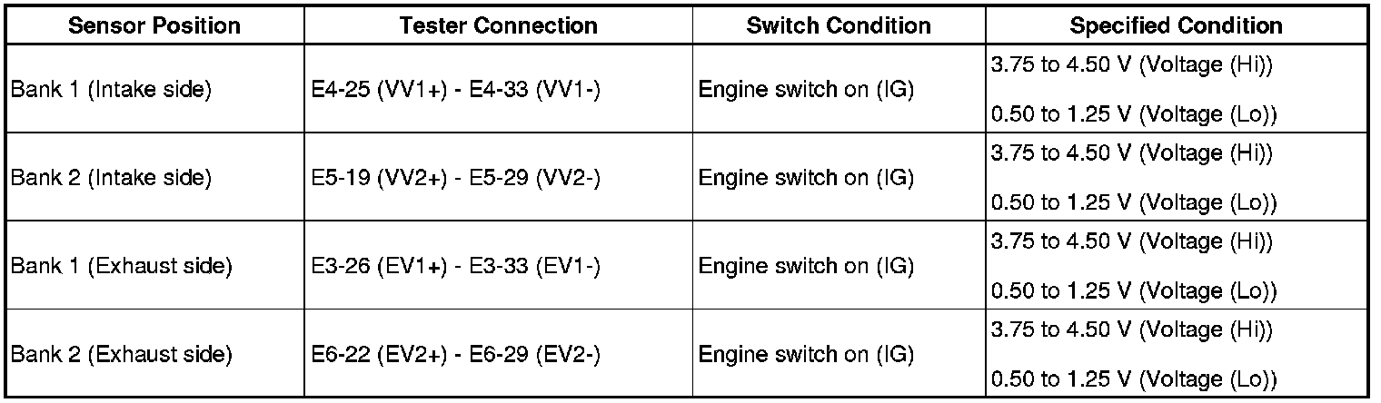 2. CHECK VVT SENSOR OUTPUT VOLTAGE