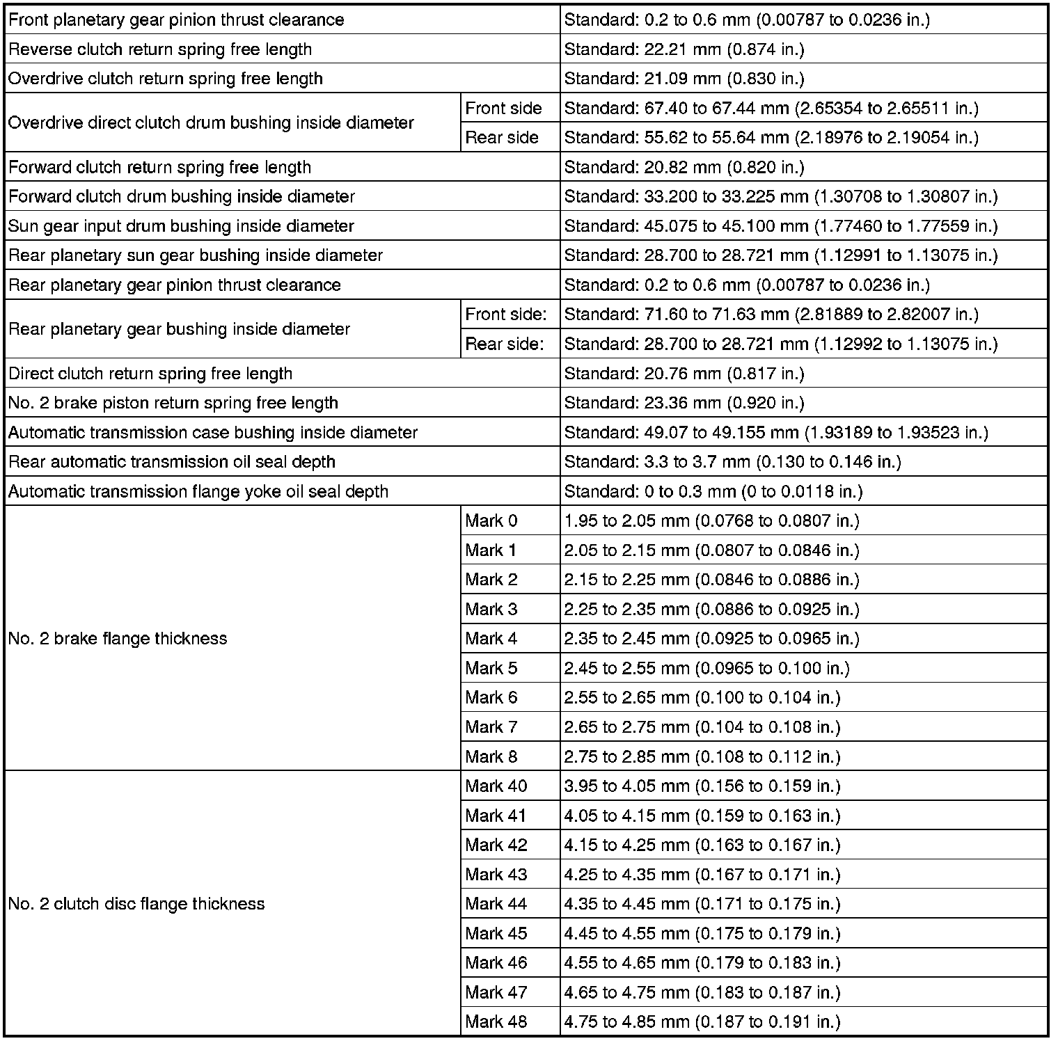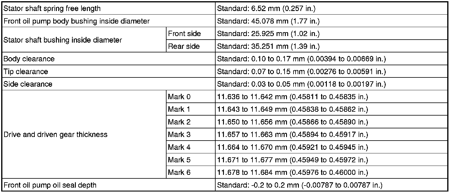 SPECIFICATIONS: AA80E AUTOMATIC TRANSMISSION / TRANSAXLE: SERVICE DATA