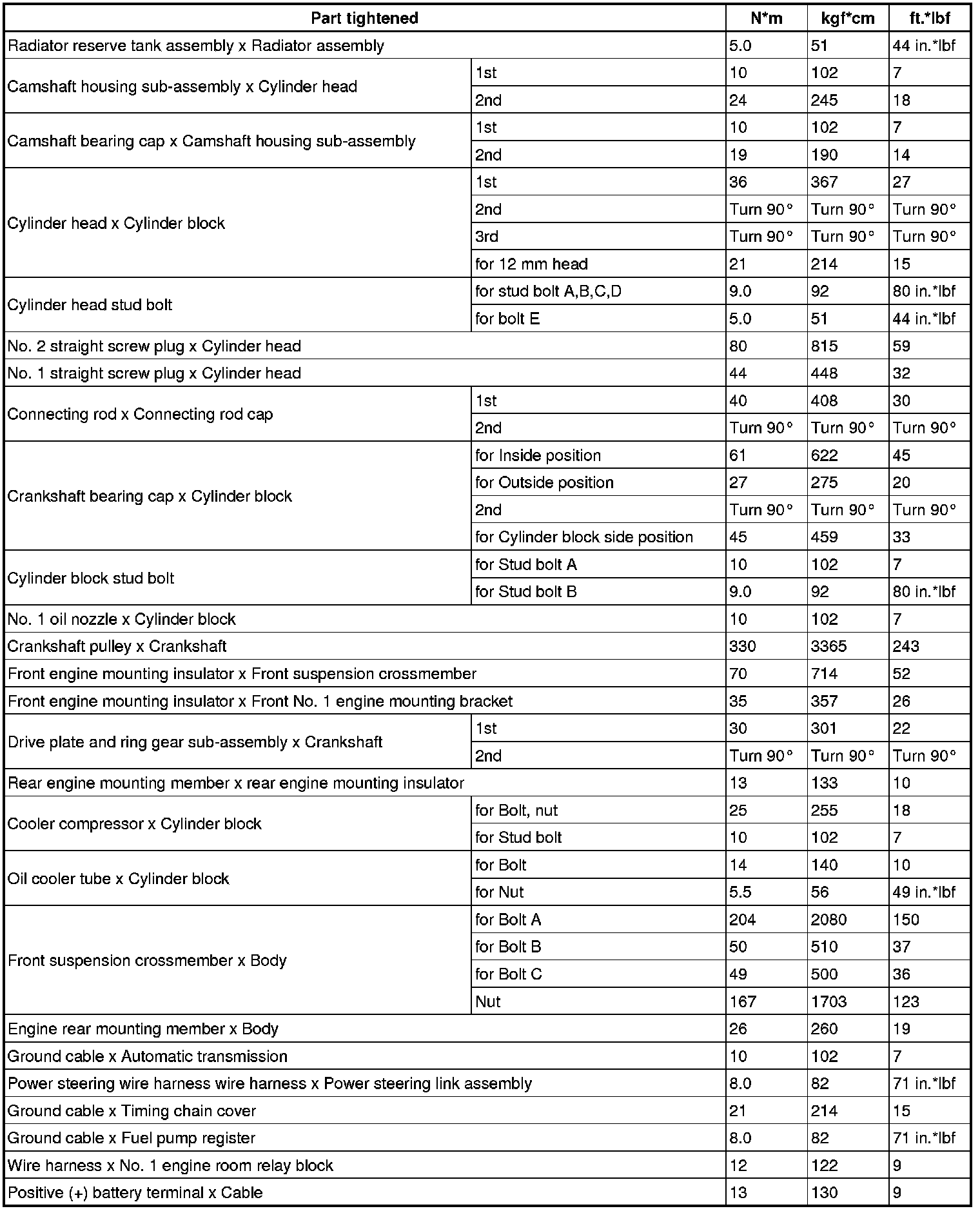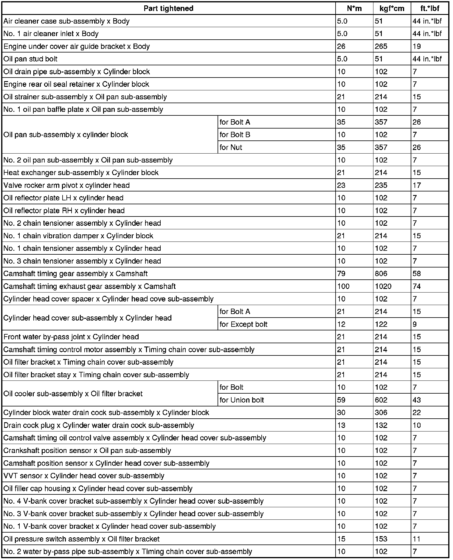 SPECIFICATIONS: 2UR-GSE ENGINE MECHANICAL: TORQUE SPECIFICATIONS