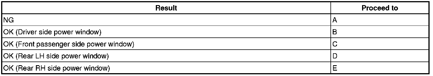 (a) Check that all door power windows move when the auto up/down function of the multiplex network master switch assembly and power window regulator switch assemblies (for front passenger, rear LH and rear RH sides) is operated Component Tests and General Diagnostics.
