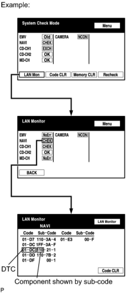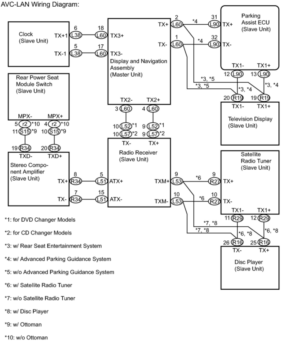 (a) Referring to the AVC-LAN wiring diagram below, check the AVC-LAN circuit between the disc player and the component shown by the sub-code.