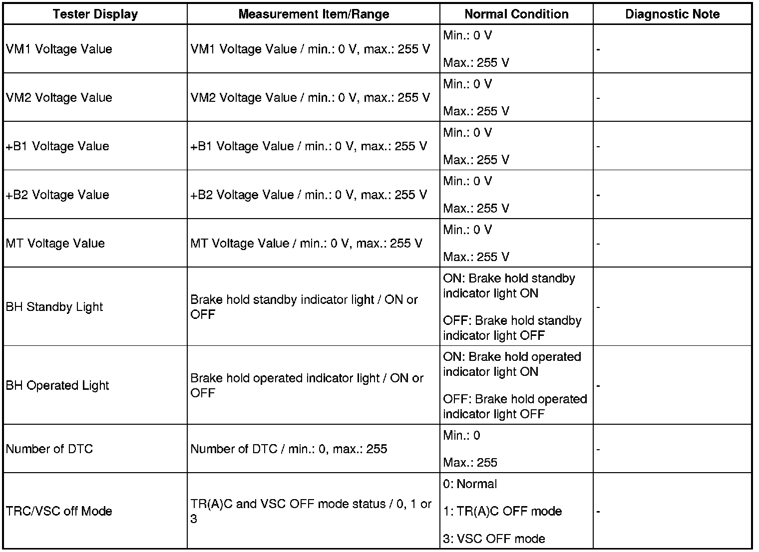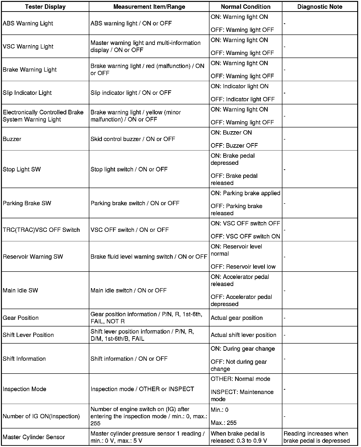 HINT: Using the Techstream to read the Data List allows the values or states of switches, sensor, actuators and other items to be read without removing any parts. This non-intrusive inspection can be very useful because intermittent conditions or signals may be discovered before parts or wiring is disturbed. Reading the Data List information early in troubleshooting is one way to save diagnostic time.