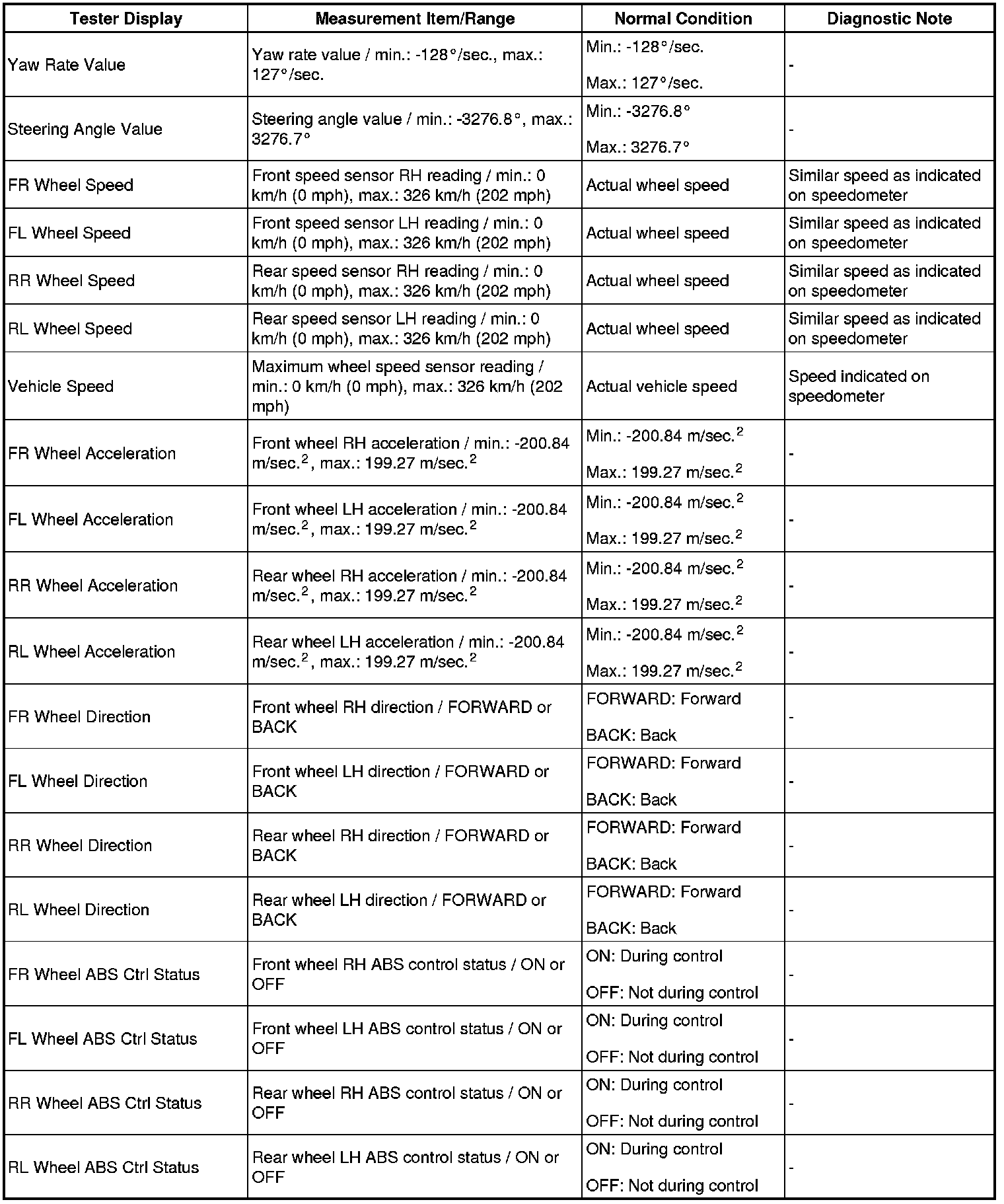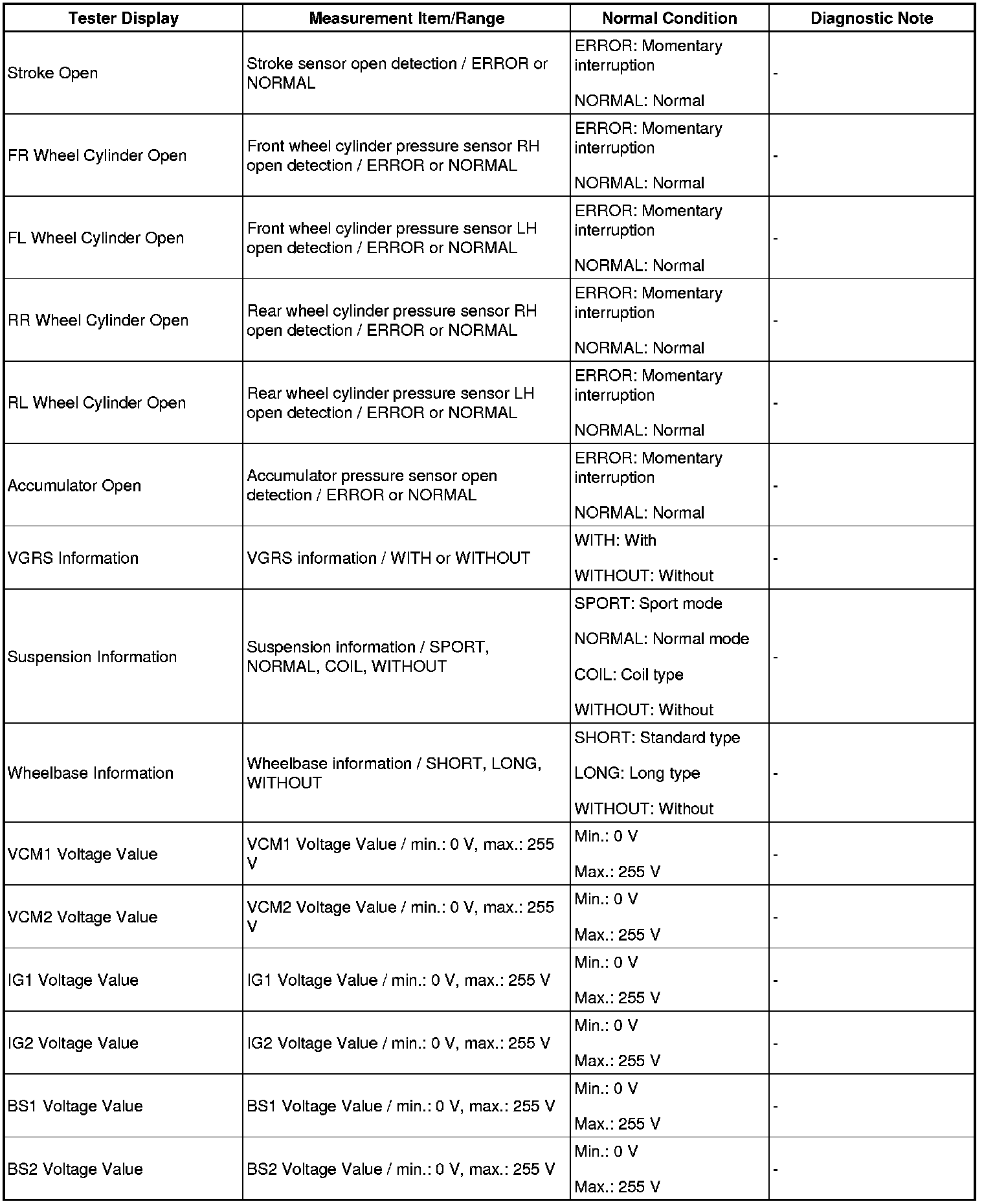 - The Active Tests of the ABS solenoid, ABS motor relay, ABS warning light and brake warning light / red (malfunction) are available when the vehicle is stopped.