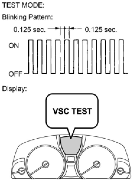 (3) Check that the ABS warning light and brake warning light / yellow (minor malfunction) blink and "VSC TEST" is indicated on the multi-information display (Test Mode).