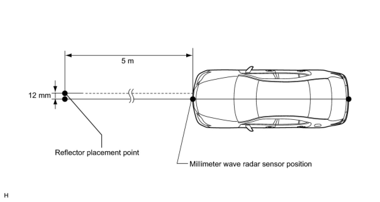 (3) Using a tape measure, measure 12 mm (0.47 in.) to the left of the 5 m (16.41 ft.) position. Place the reflector at that position.