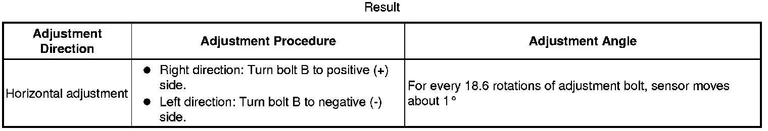 - If "LEFT SIDE: 1.0°" is displayed, the divergence is 1.0° in the left direction. Turn bolt B approximately 18.6 turns to the negative (-) side.