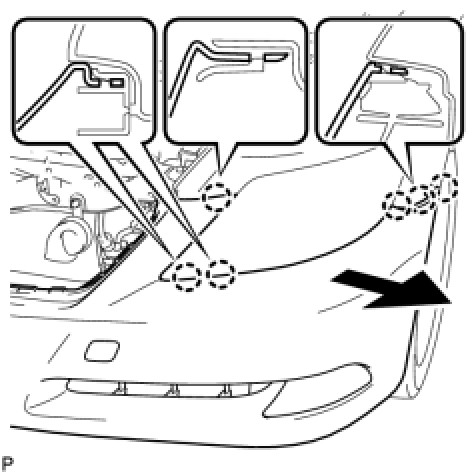 (d) Detach the 6 claws and remove the front bumper cover as shown in the illustration.