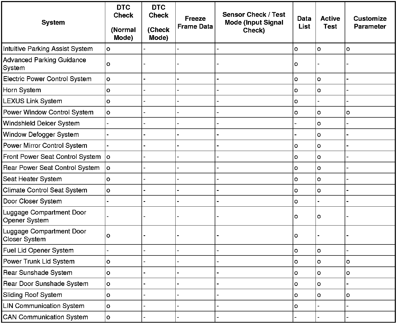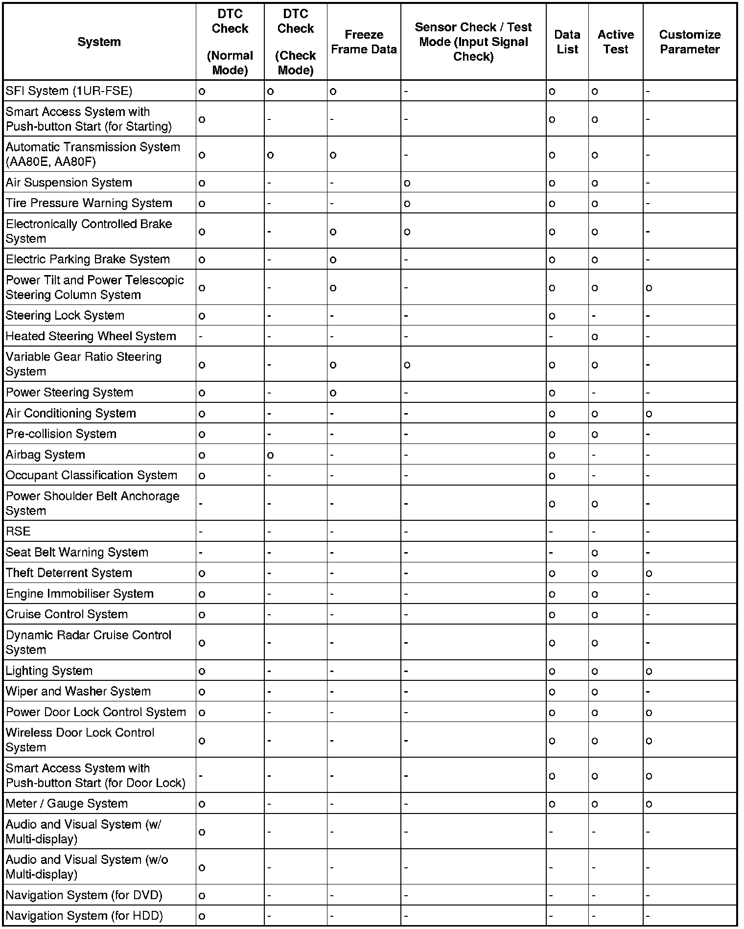 By using these functions, the problem areas can be narrowed down and troubleshooting is more effective. Diagnostic functions are incorporated in the following systems in the LEXUS LS460L / LS460.