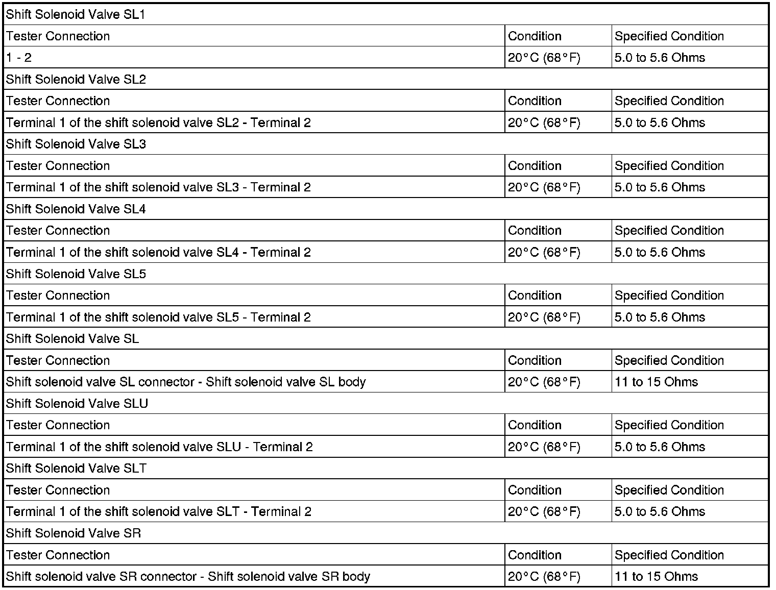 SERVICE SPECIFICATIONS: AA80F AUTOMATIC TRANSMISSION: SERVICE DATA