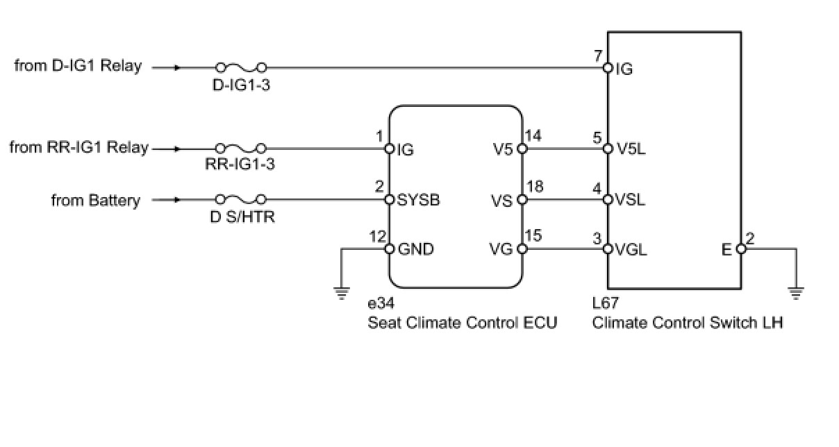 3. CHECK HARNESS AND CONNECTOR (SEAT CLIMATE SWITCH LH - BATTERY AND BODY GROUND)