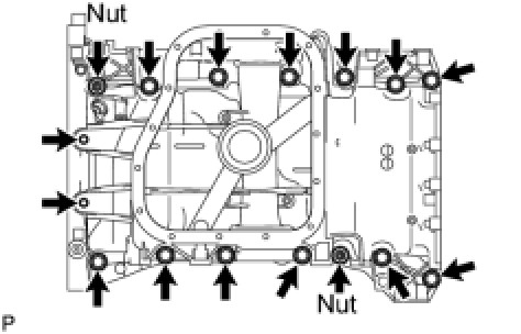 Remove the 13 bolts and 2 nuts.