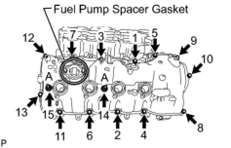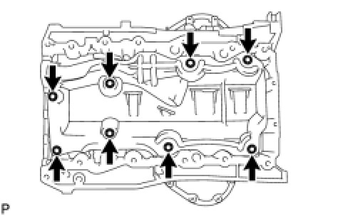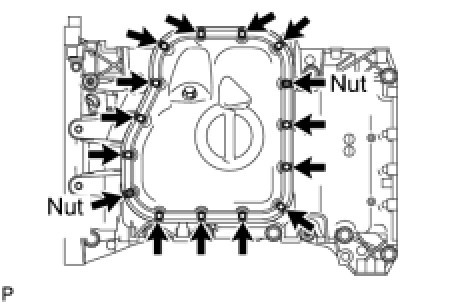 (b) Install the oil pan with the 14 bolts and 2 nuts.