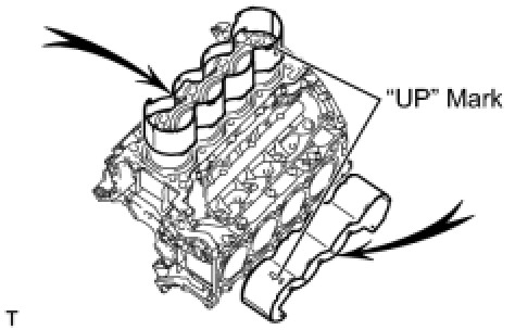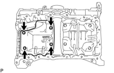 HINT: Install the oil pan protector with its protrusion facing the bottom of the engine.