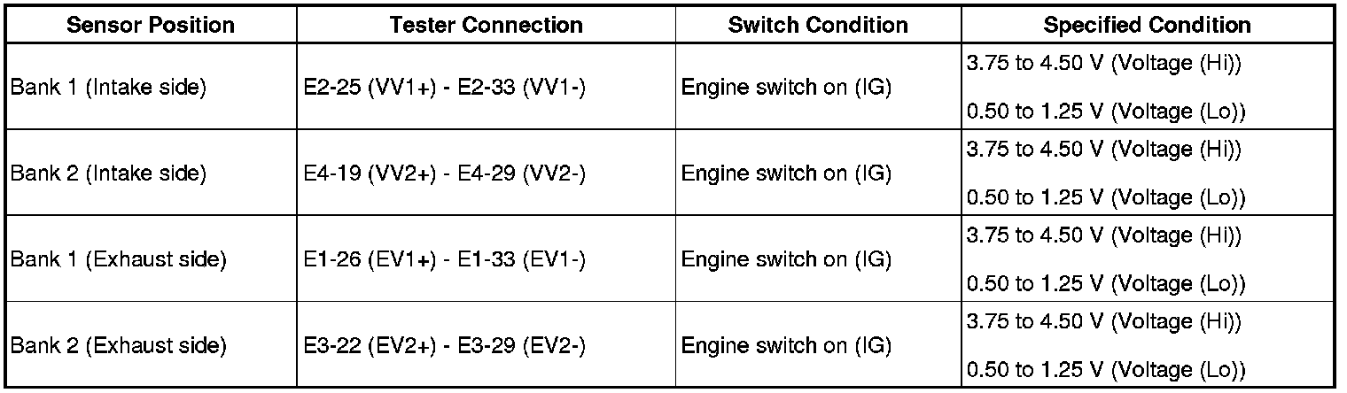 1. CHECK VVT SENSOR OUTPUT VOLTAGE