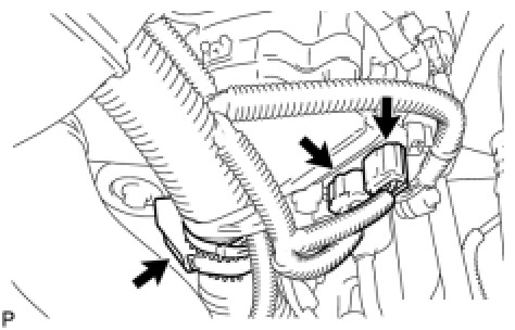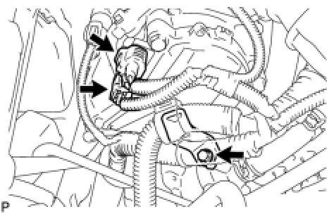 (a) Disconnect the 2 camshaft timing control with EDU motor connectors and engine wire clamp.