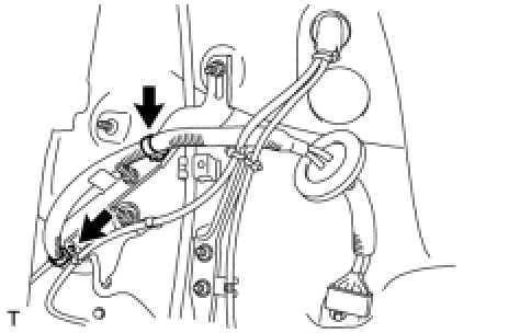 (3) Connect the trunk interior's parking brake actuator grommet and connector.