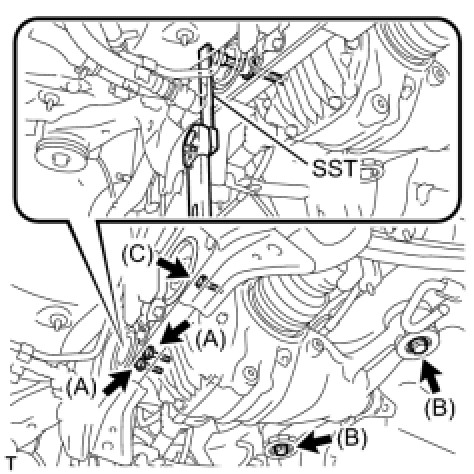 (g) Using SST and a 12 mm socket hexagon wrench, tighten the bolt (C).