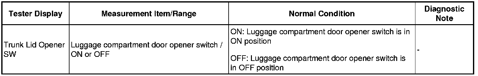 ENGINE HOOD / DOOR: LUGGAGE COMPARTMENT DOOR OPENER SYSTEM: DATA LIST / ACTIVE TEST