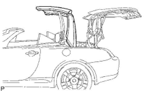 (b) Using a screwdriver, detach the 3 clips labeled A and remove the headlining.