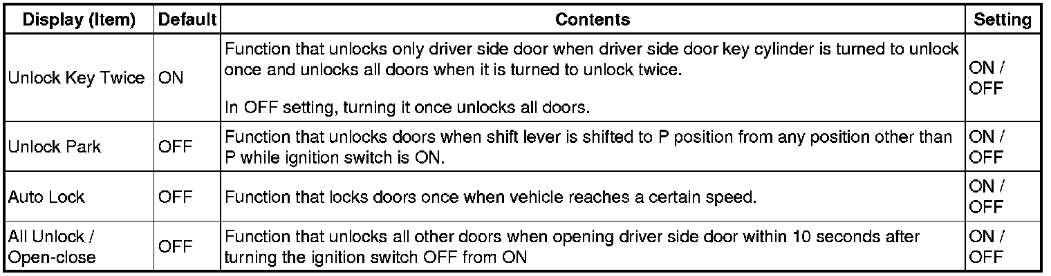 DOOR LOCK: POWER DOOR LOCK CONTROL SYSTEM: CUSTOMIZE PARAMETERS
